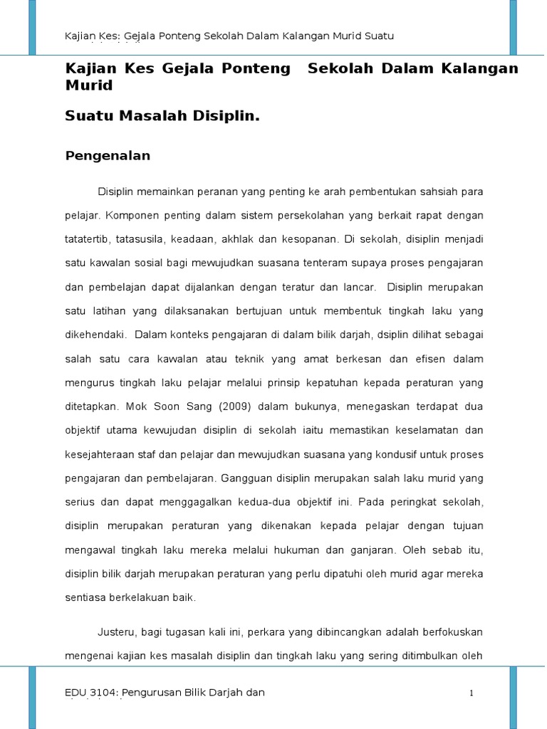Kajian Kes Gejala Ponteng Sekolah Dalam Kalangan Murid Suatu Masalah Disiplin Pdf